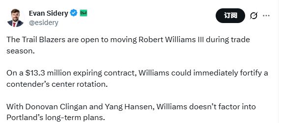 谈及罗威,名记Sidery表示,交易截止日前,开拓者队愿意听取关于罗威的交易报价。罗威本赛季的合同为1330万美元,且即将到期,他能够立即补强争冠球队的中锋轮换阵容。开拓者在五号位的位置上拥有克林根和杨瀚森,罗威已不在球队的长期规划之中。
